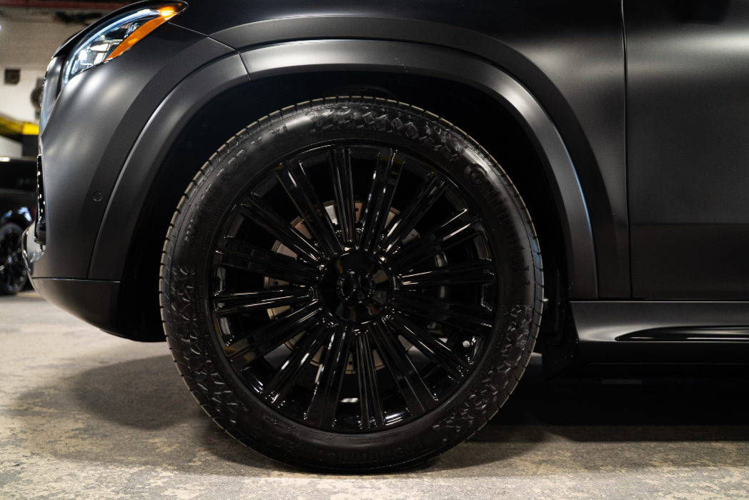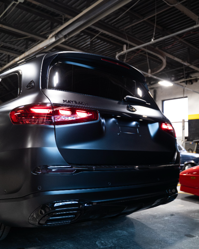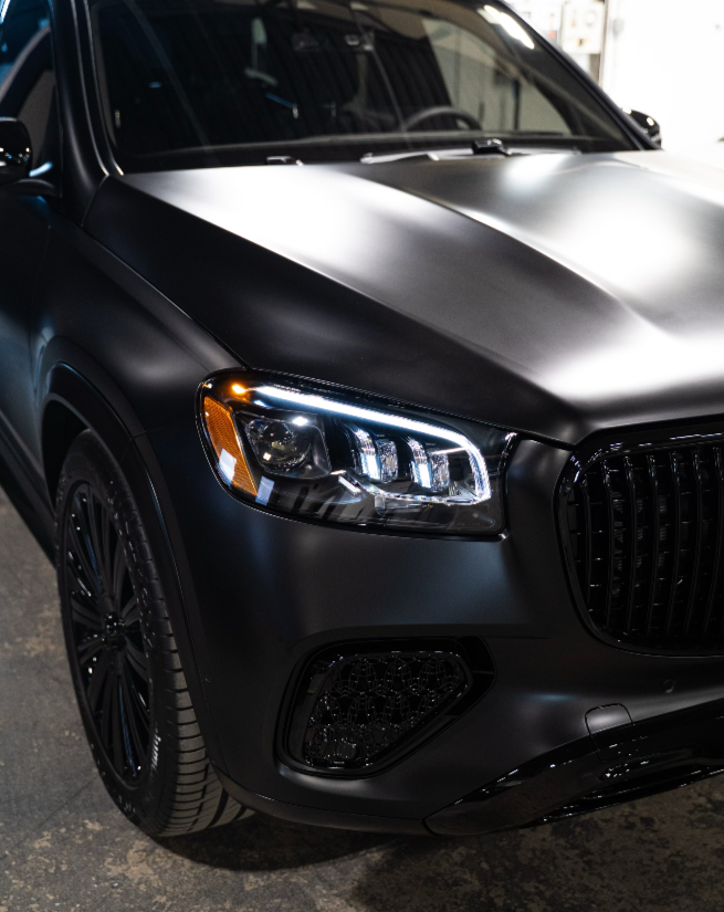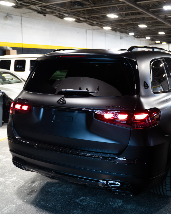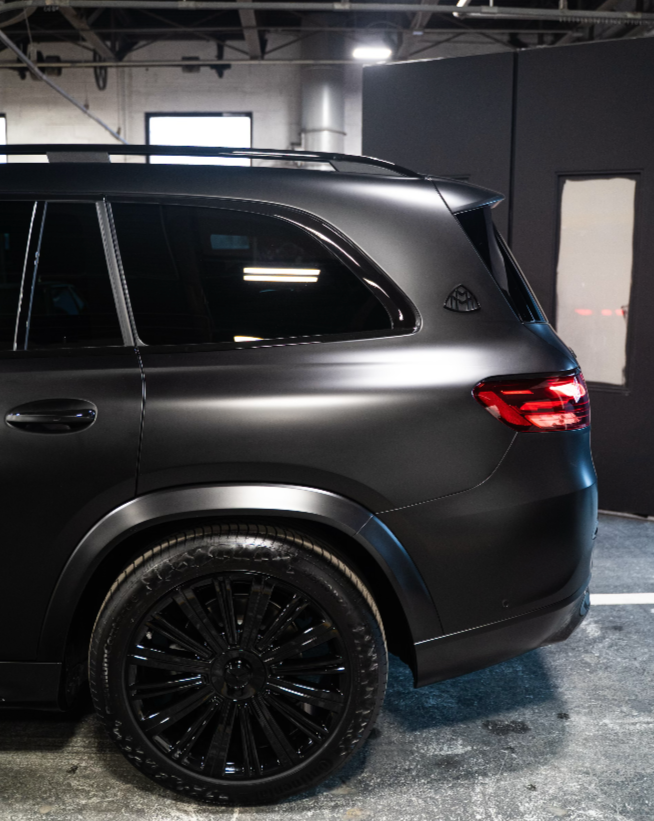 Full body SVG Satin Black PPF, Windshield Protection film, full ceramic tints, full chrome delete, powder coated wheels, and inside and out ceramic coating.